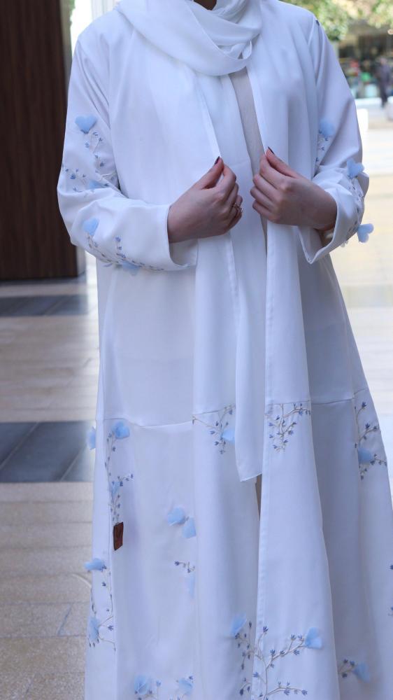 تألقي مع عباية نسائية الأبيض بورد السماوي وتمتعي بإطلالة راقية تجمع بين الفخامة والراحة من خلال زيارة متجر fashionsky اكتشفي تشكيلتنا المميزة وتسوقي الآن لتبرزي أناقتك في كل مناسبة